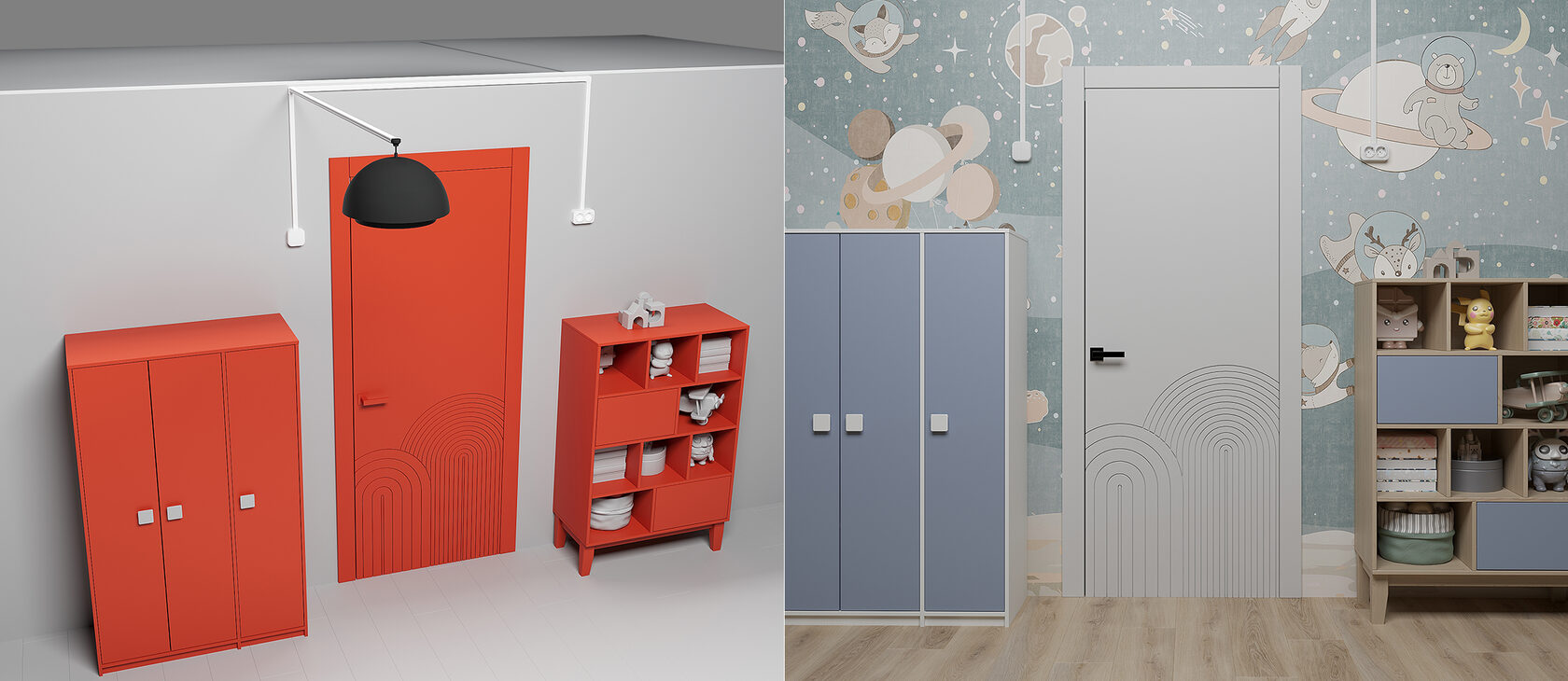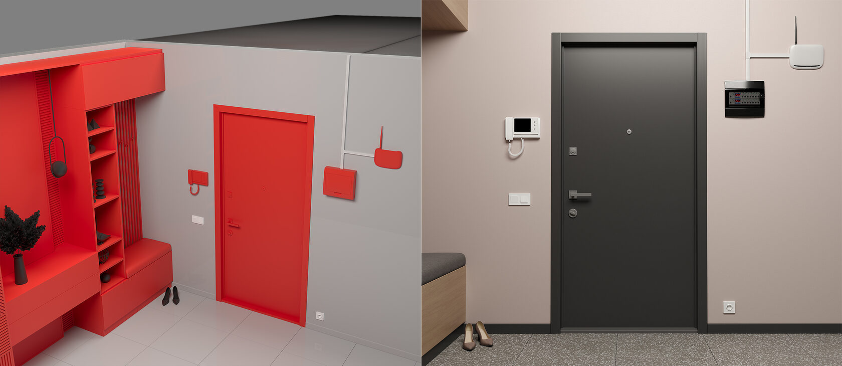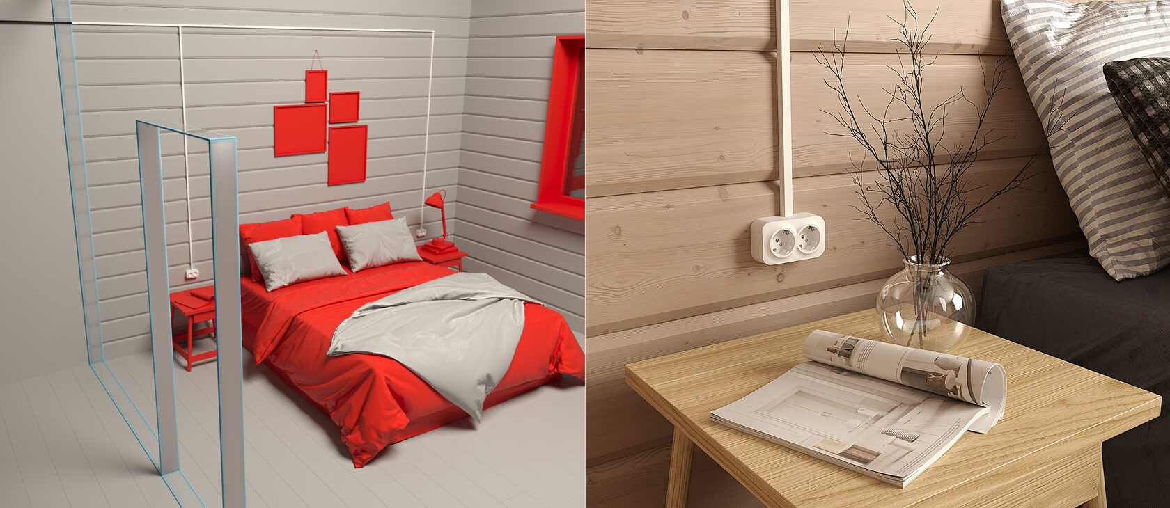Под каждый созданный 3D визуал мы дополнительно подготовили изометрические изображения для выделения проуктов - розеток, выключателей и кабель-каналов Daccord.