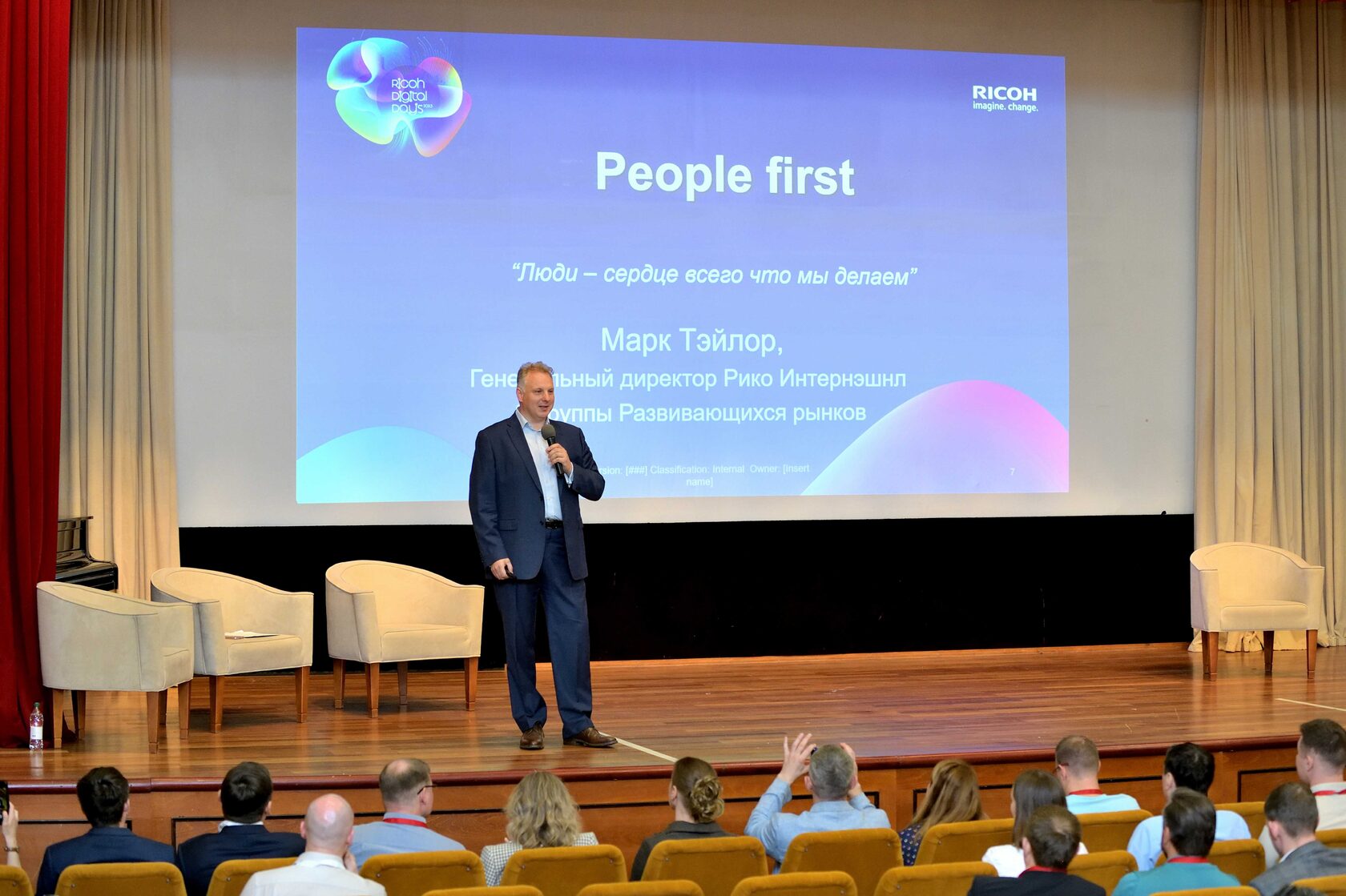 Трехдневное мероприятие, объединяющее партнеров и клиентов Ricoh прошло в Moscow Сountry Сlub в Красногорске. Каждый из дней включал в себя бизнес-лекции, встречи, ротационные сессии и презентации, а так же развлекательную часть, где участники могли повеселиться и расслабиться после насыщенной деловой программы. В завершении мероприятия гости посетили гала-ужин, играли в викторину в формате квиза и танцевали на дискотеке под популярные песни в исполнении кавер-группы.