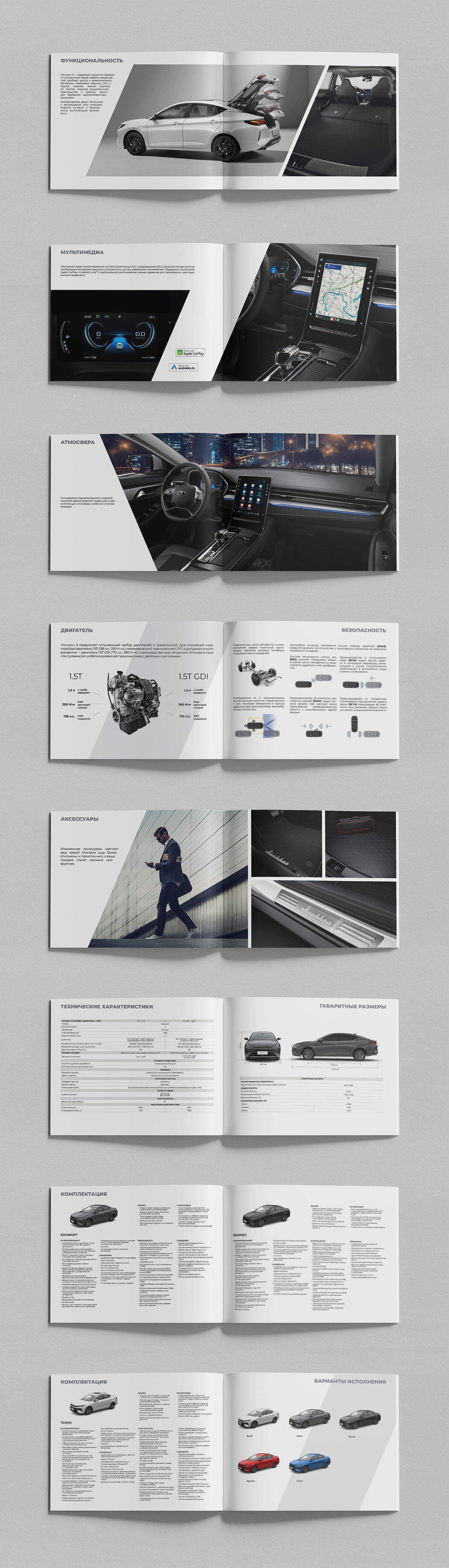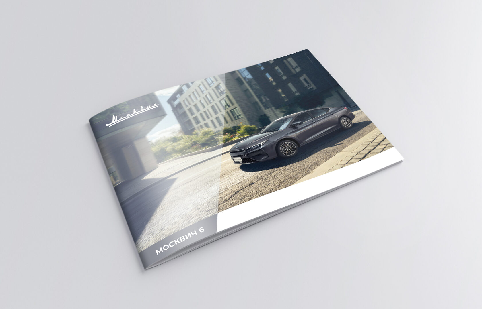 Дизайн брошюры новой модели Москвич 6 выполнен в соответствии с концепцией дизайна самого автомобиля: динамичные, стремительные линии и выверенные пропорции.